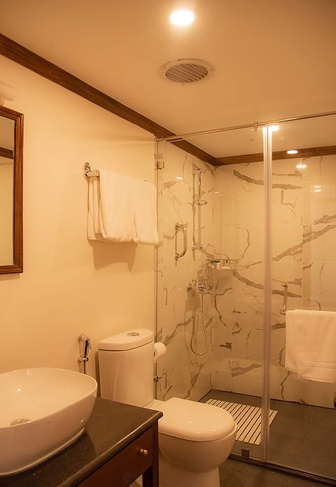 For wellness and leisure, ABN Charaidew II is equipped with a small gym and a spa offering a selection of treatments to rejuvenate guests during their journey. The combination of spacious accommodation, thoughtful amenities, and well-appointed communal areas ensures a comfortable and enriching river cruise experience.