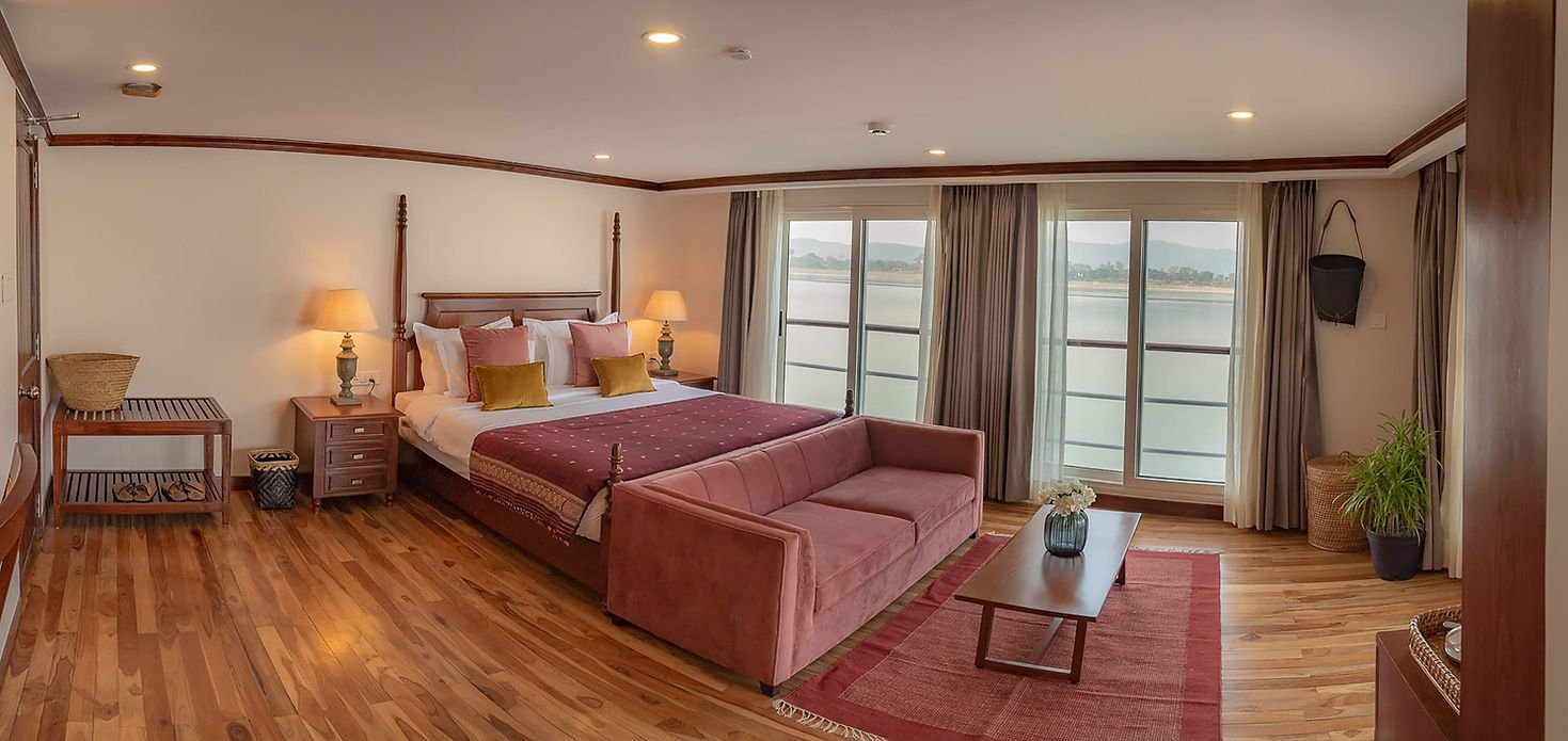 The interiors of ABN Charaidew II are inspired by the charm of Assam, combining colonial-style elegance with traditional Assamese artistry. Hand-woven cotton fabrics, warm wood tones, and subtle design elements create a welcoming atmosphere that feels both refined and homely.