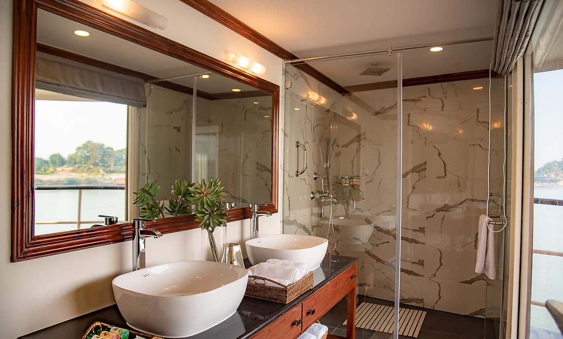 Guest comfort is a priority, and each cabin comes with a range of amenities, including individual climate control, en suite shower and WC, generous storage, a hairdryer, minibar, electronic safe, tea and coffee-making facilities, intercommunication telephone, and high-quality bathrobes and slippers. Large sliding glass windows enhance the experience, offering panoramic views of the ever-changing river scenery.