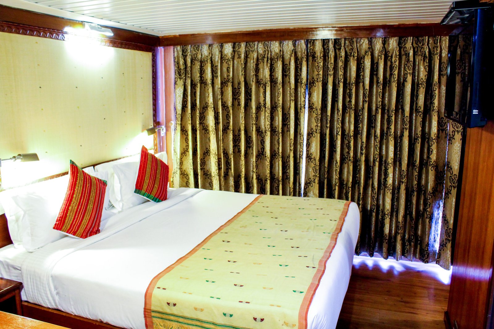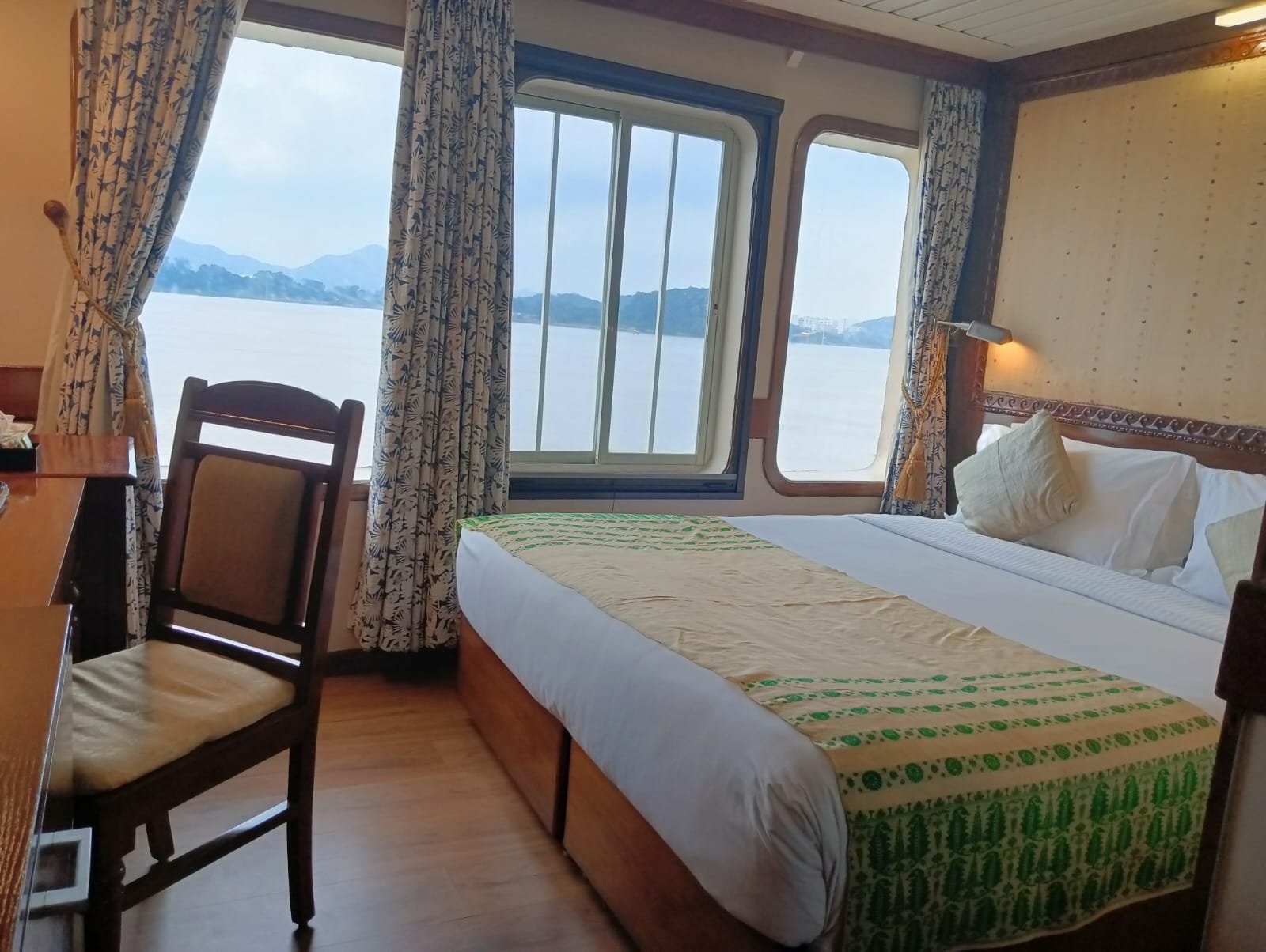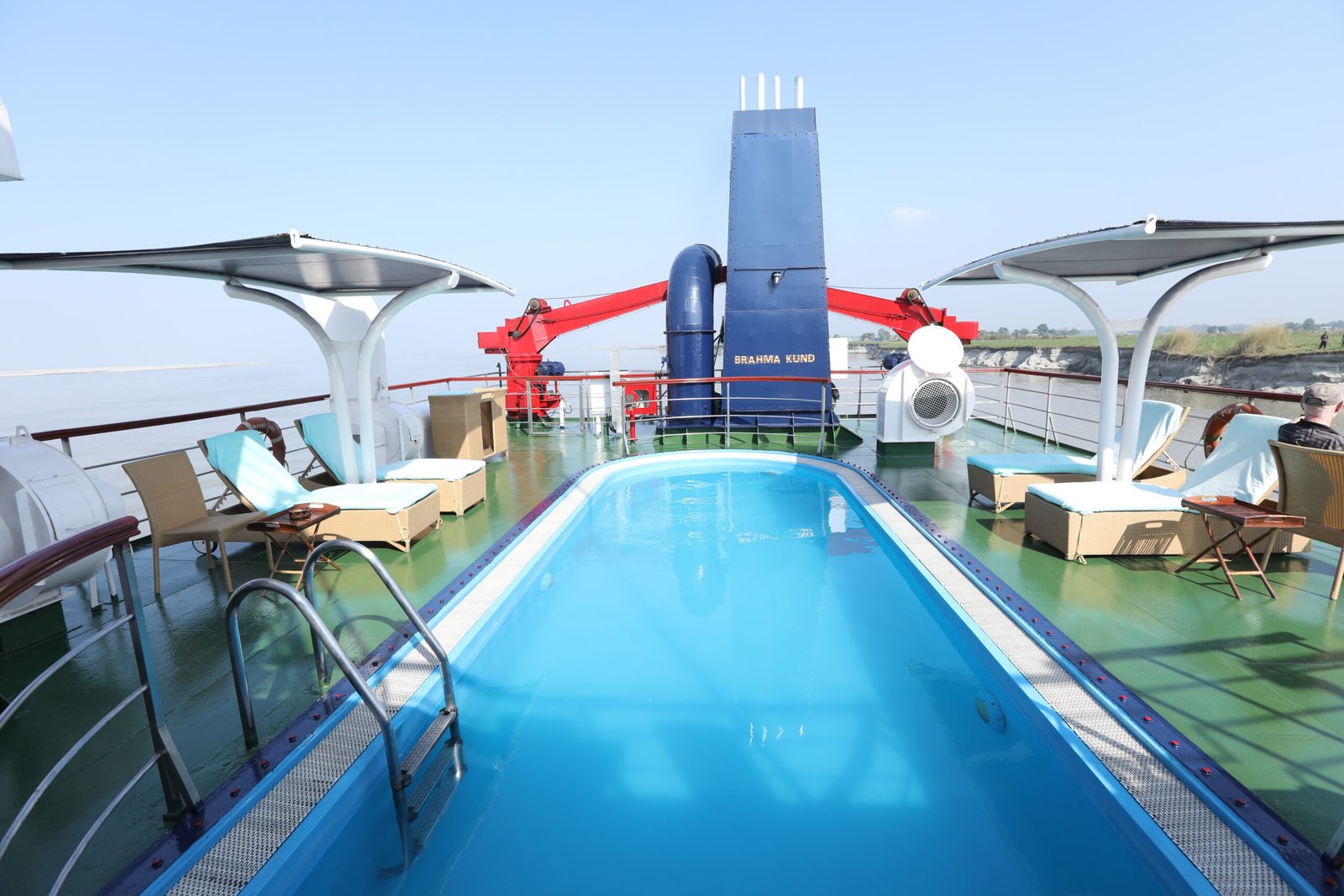 M.V. Mahabaahu is a magnificent five-deck luxury vessel featuring 23 cabins across four categories – 2 Suites, 2 Luxury Cabins, 7 Deluxe Cabins, and 12 Superior Cabins without balconies. Designed to the highest international standards with a double-bottom hull and powered by three engines, she is one of the safest ships sailing on the Brahmaputra River. The ship offers exceptional comfort with a passenger elevator connecting four of the five decks, making it ideal for elderly and differently-abled guests. Spacious public areas span the Sun Deck (Donyi Polo Deck), Yoga Deck (Parshuram Deck), and Swimming Pool Deck (Brahmakund), featuring a 29-foot-long pool—the only one of its kind on the river.