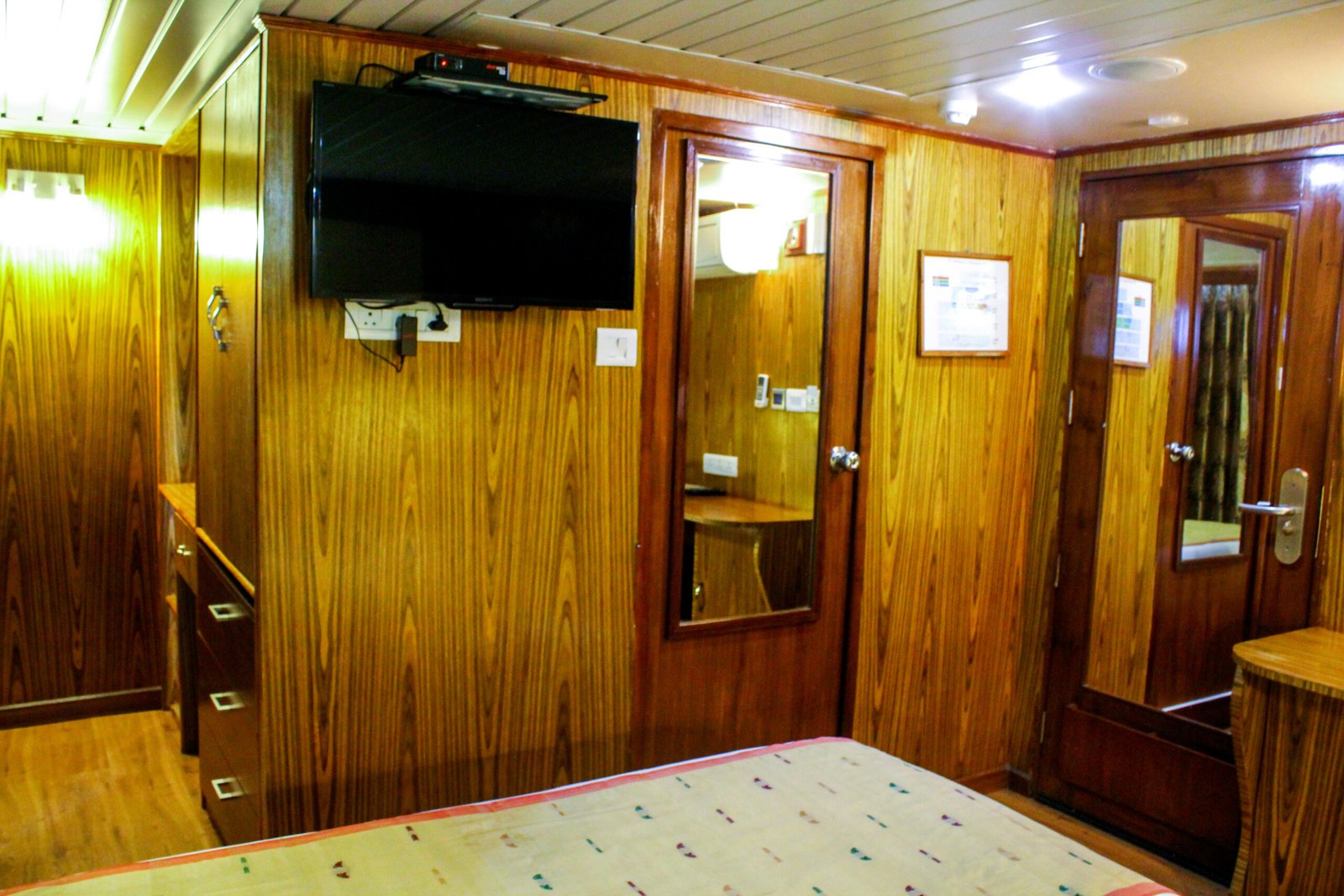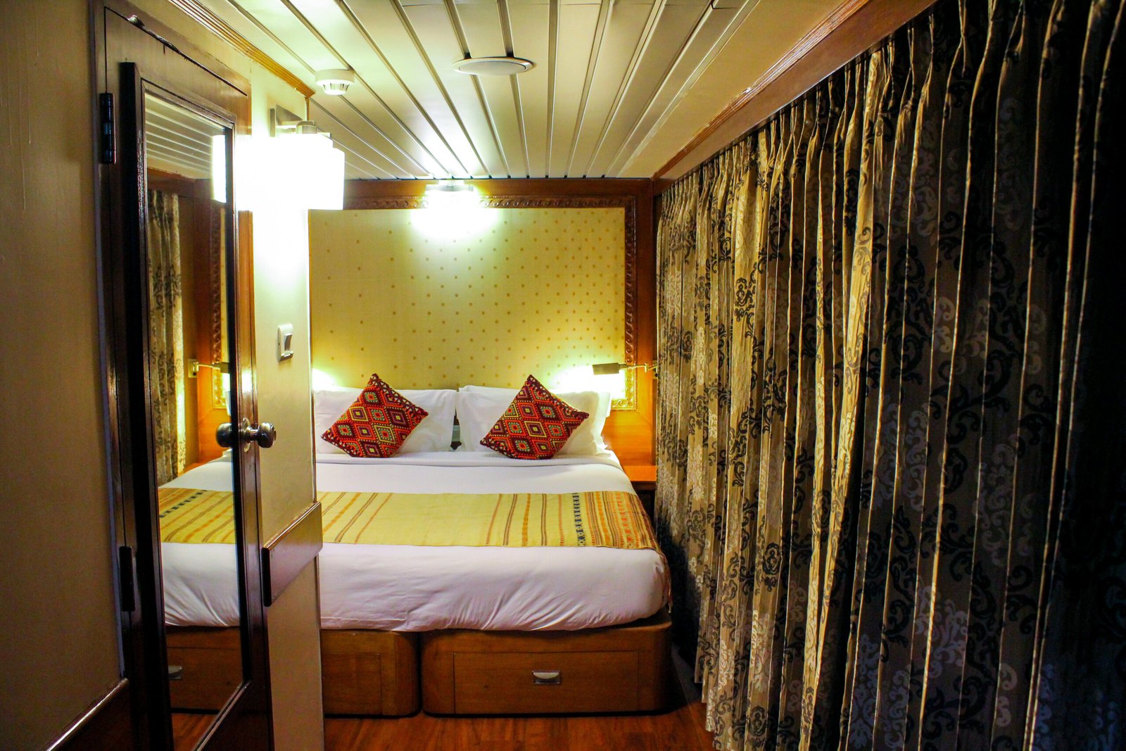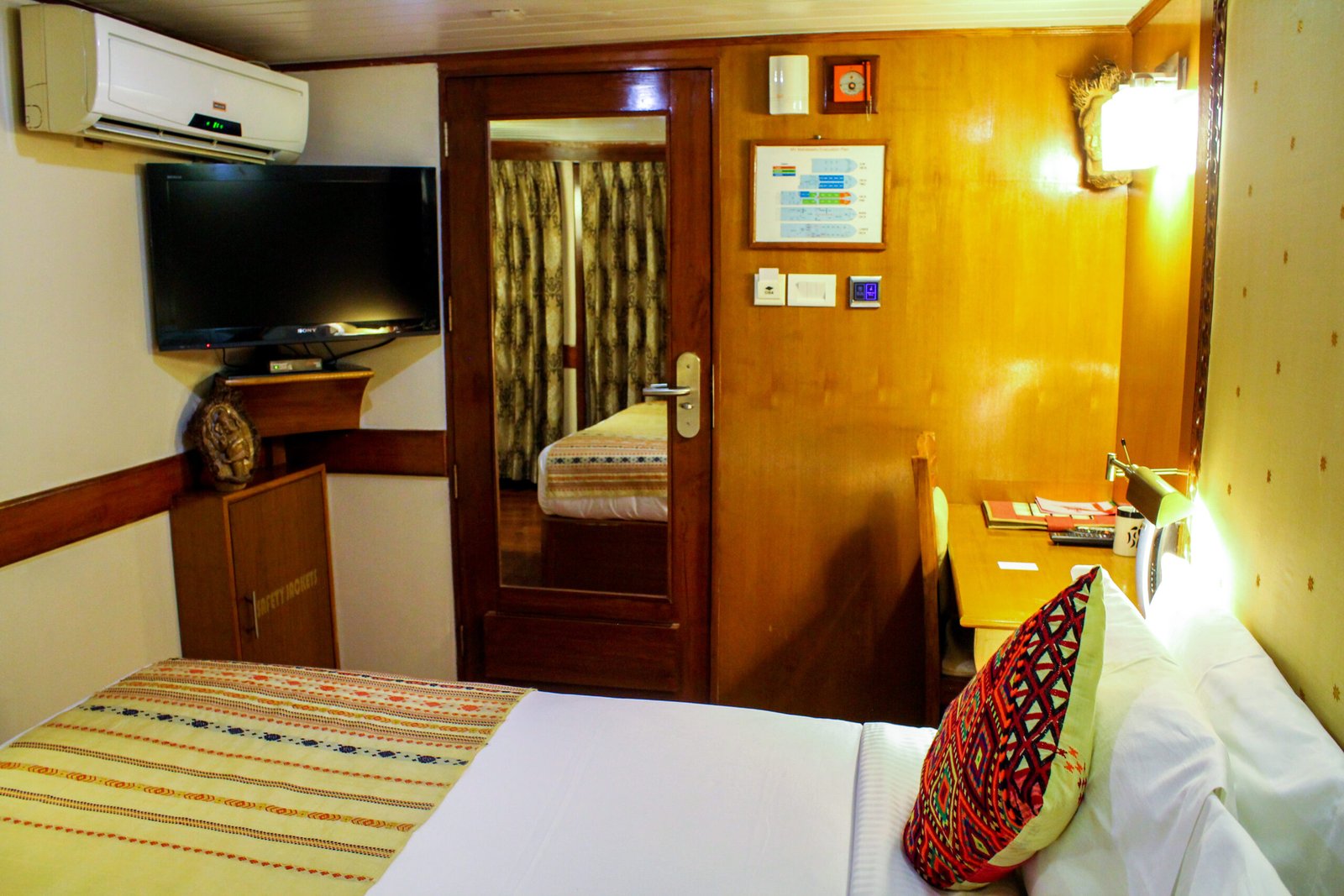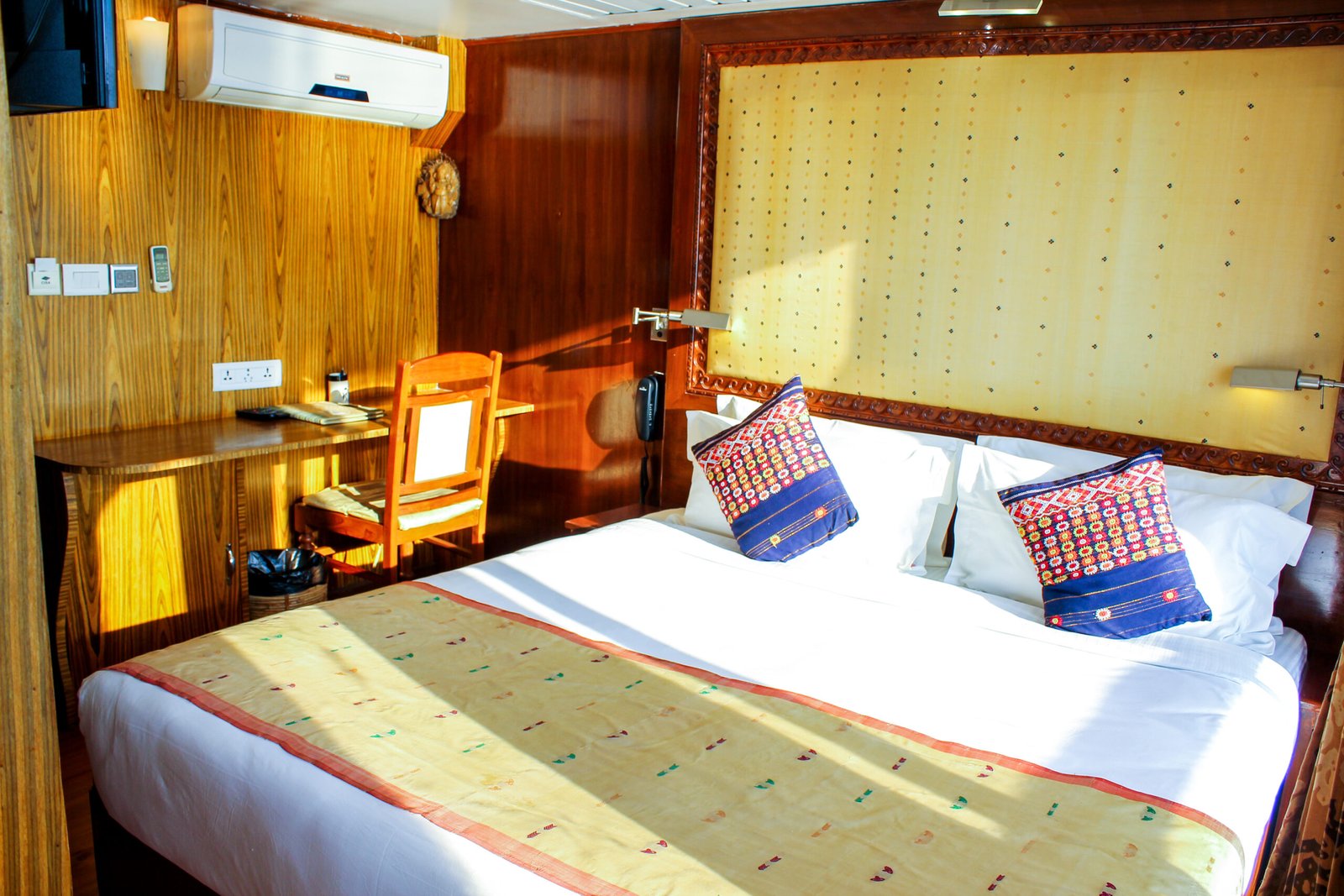M.V. Mahabaahu is a magnificent five-deck luxury vessel featuring 23 cabins across four categories – 2 Suites, 2 Luxury Cabins, 7 Deluxe Cabins, and 12 Superior Cabins without balconies. Designed to the highest international standards with a double-bottom hull and powered by three engines, she is one of the safest ships sailing on the Brahmaputra River. The ship offers exceptional comfort with a passenger elevator connecting four of the five decks, making it ideal for elderly and differently-abled guests. Spacious public areas span the Sun Deck (Donyi Polo Deck), Yoga Deck (Parshuram Deck), and Swimming Pool Deck (Brahmakund), featuring a 29-foot-long pool—the only one of its kind on the river.